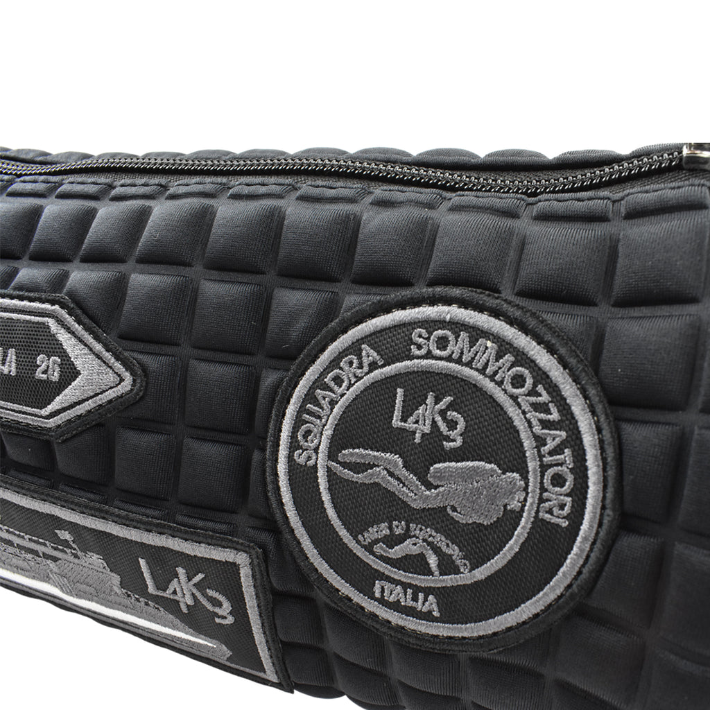 バッグの生地にはウェットスーツにもフレキシブルで丈夫なネオプレン素材を使用。