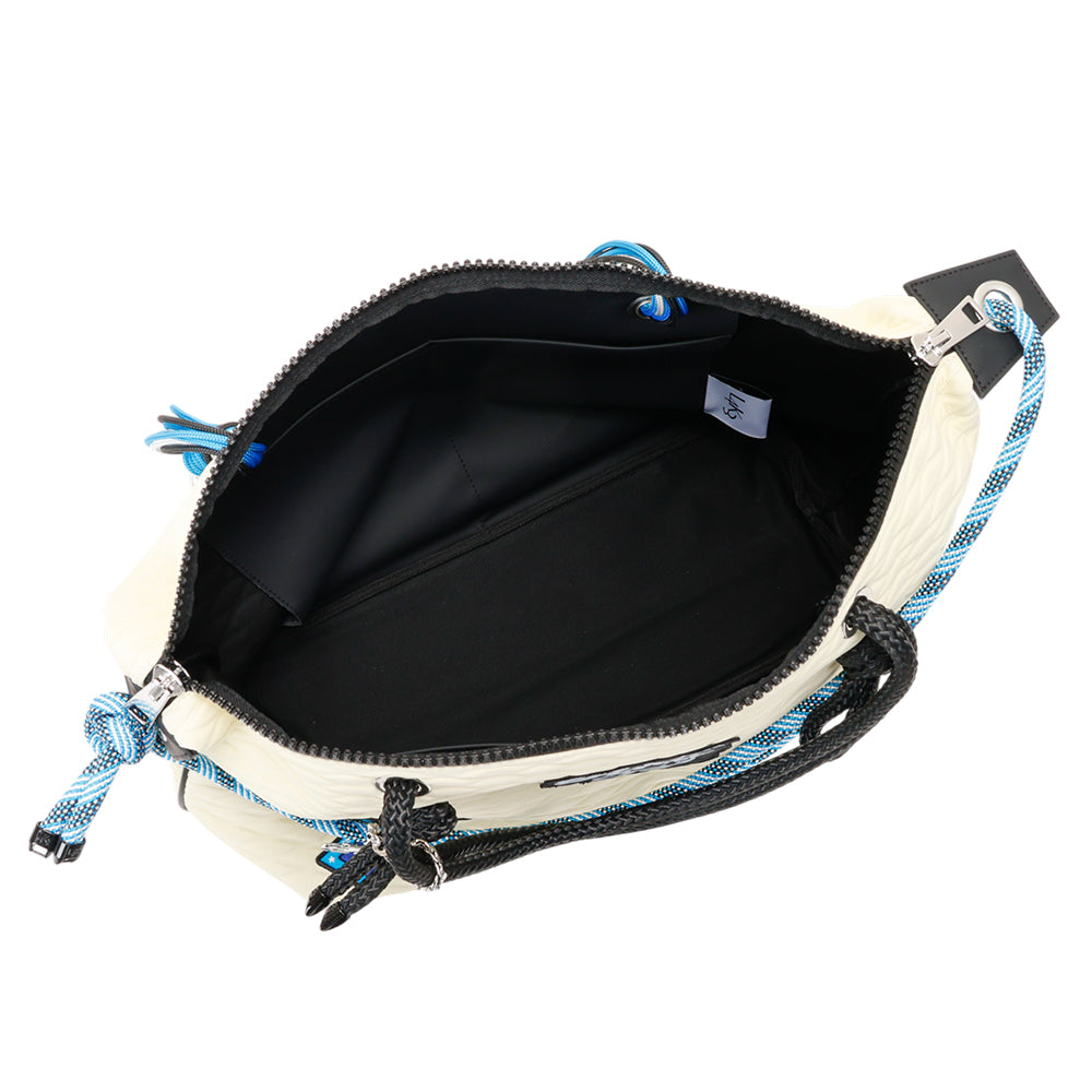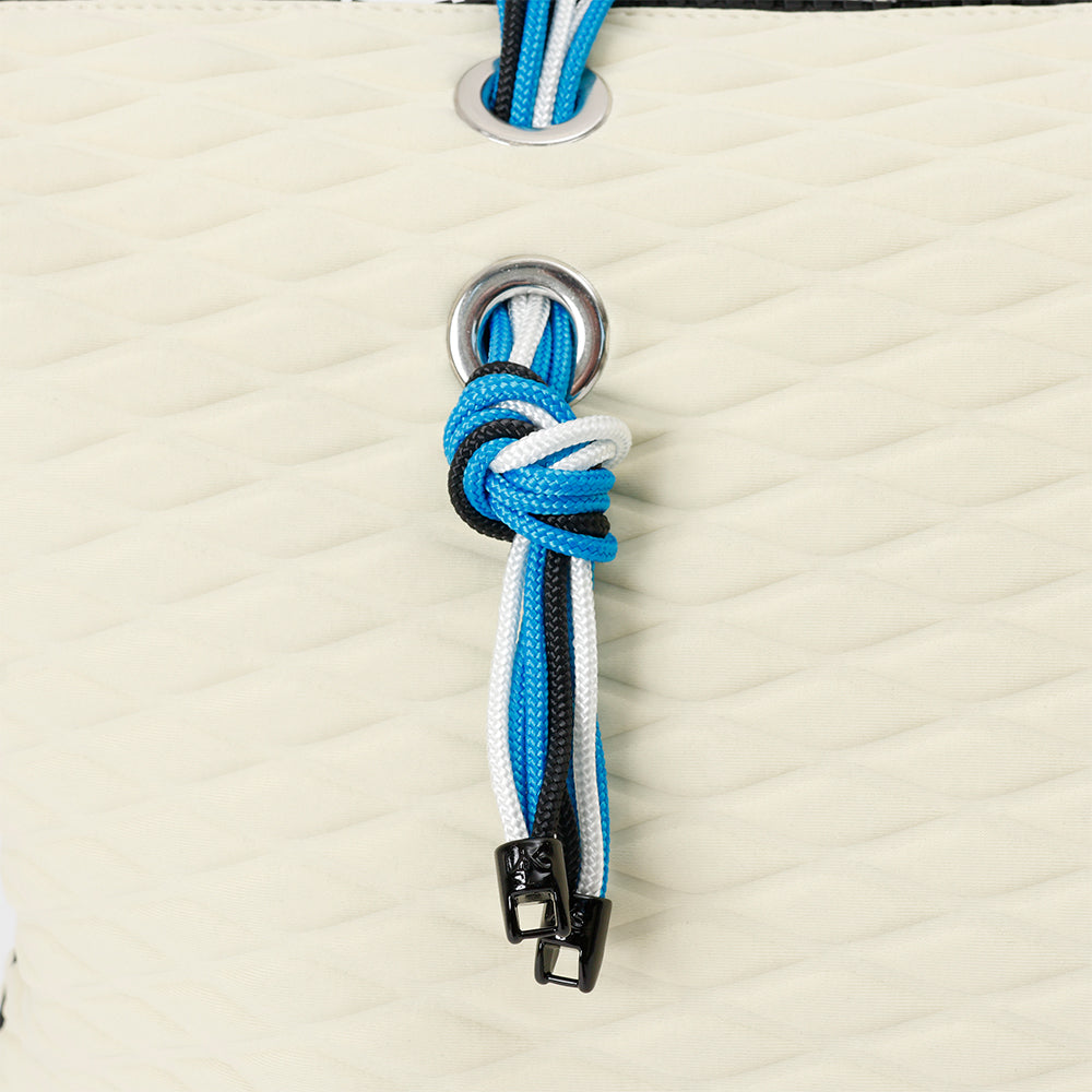스트랩 부분에는 브랜드를 상징하는 다채로운 수제 로프(딩기 로프)가 사용되어 있습니다.