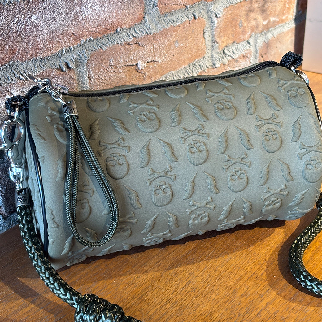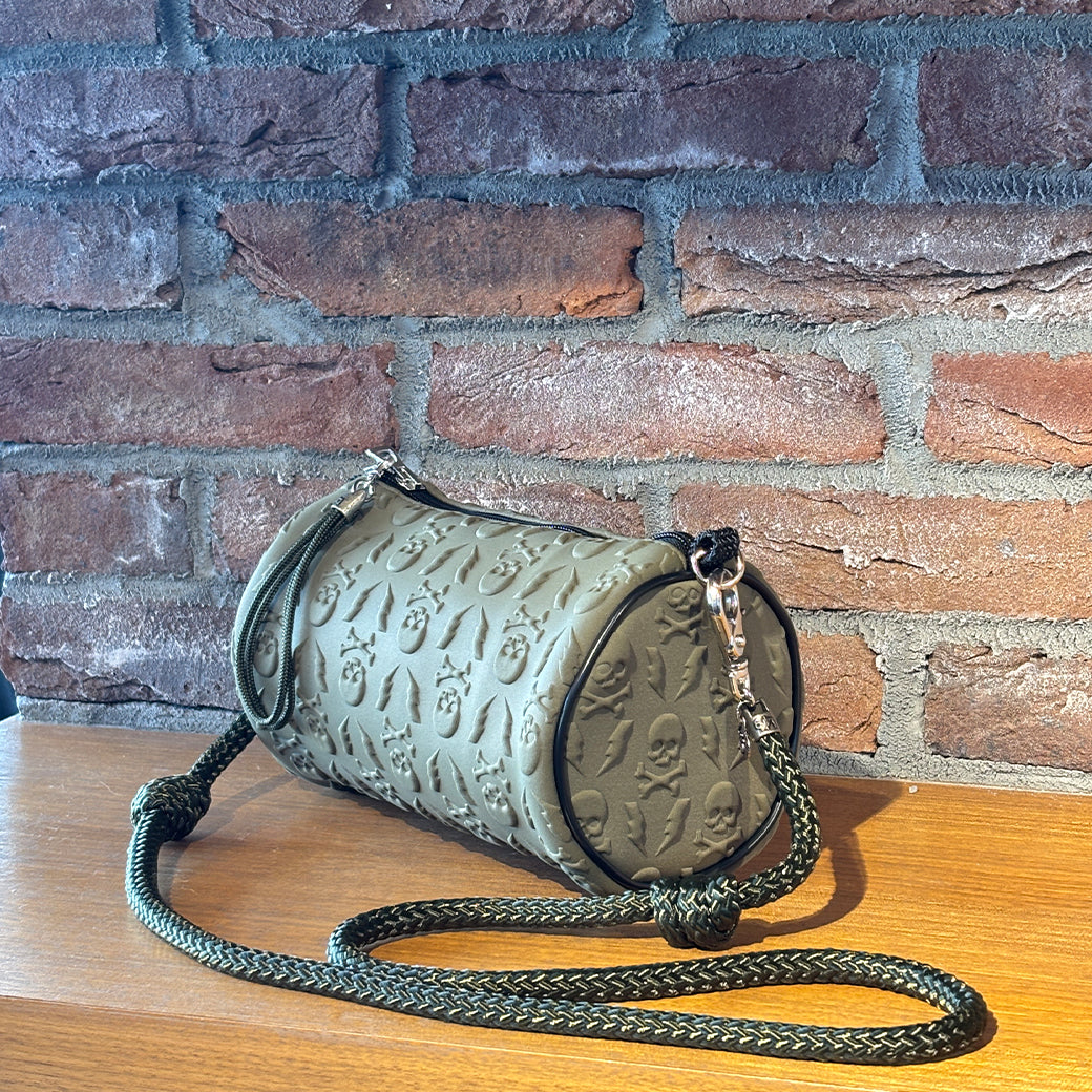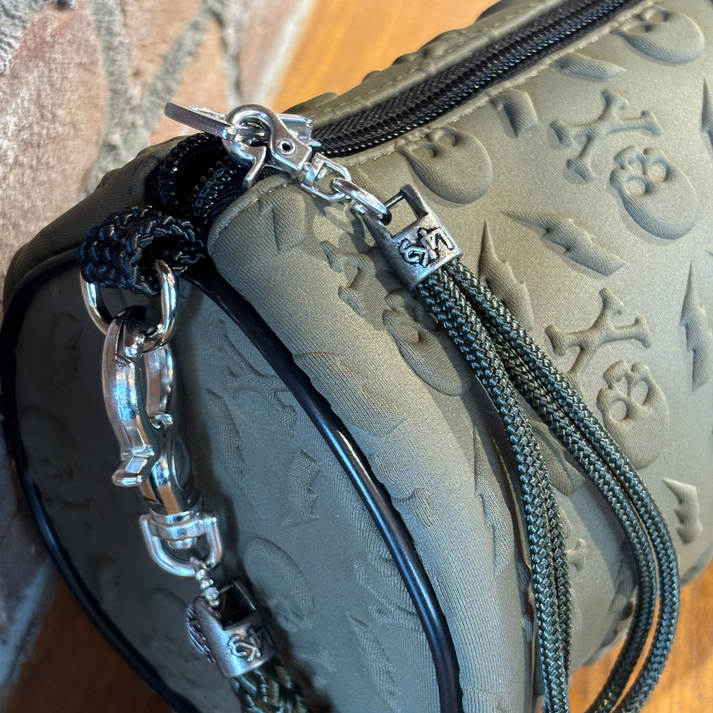 落ち着いたカーキカラーのボディに、立体的なスカル&サンダーのパターンを施し、深みのあるダークグリーンのロープでワントーンにまとめ上げた、大人の遊び心溢れるアイテムです。