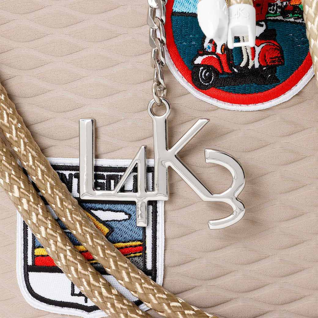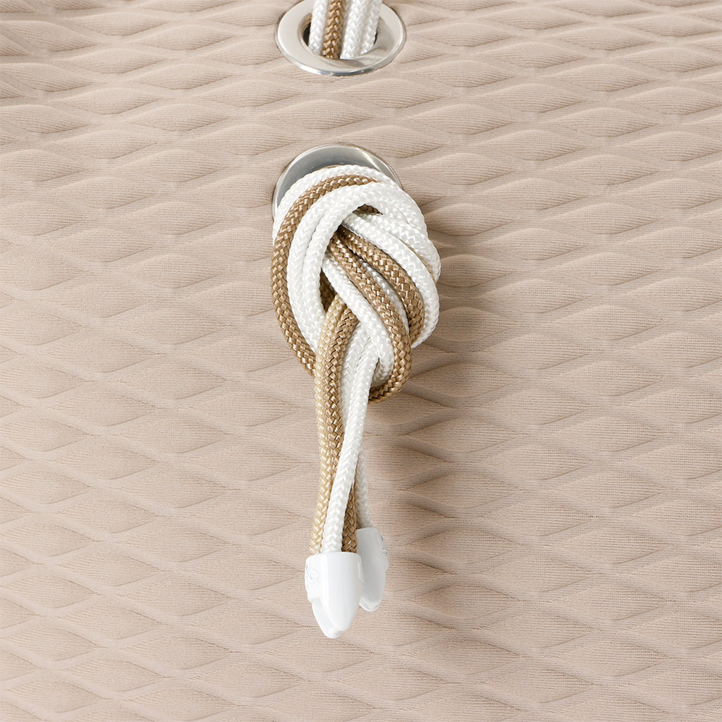 ストラップ部分にはブランドを象徴するカラフルな手作りロープ(ディンギーロープ)が使用されています。