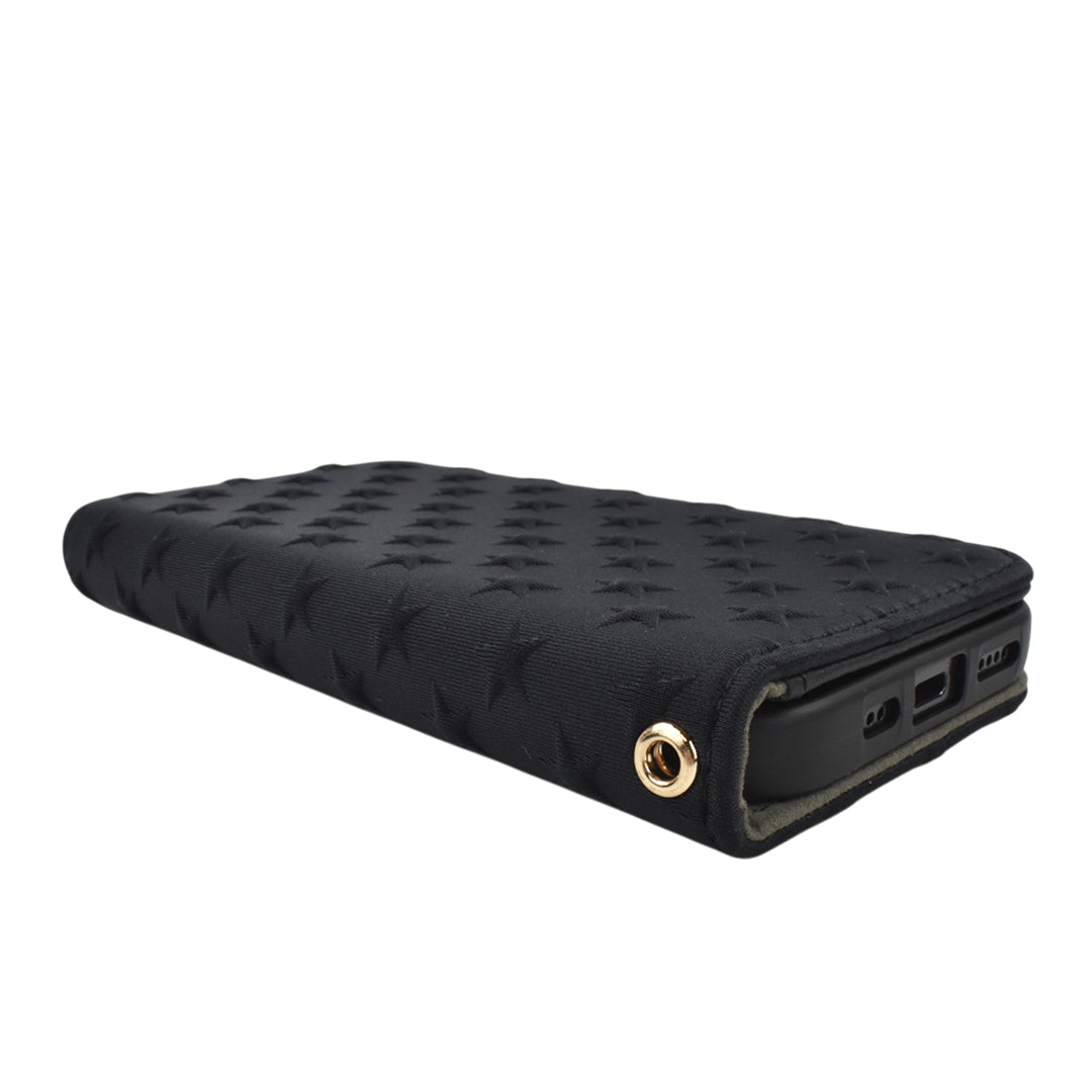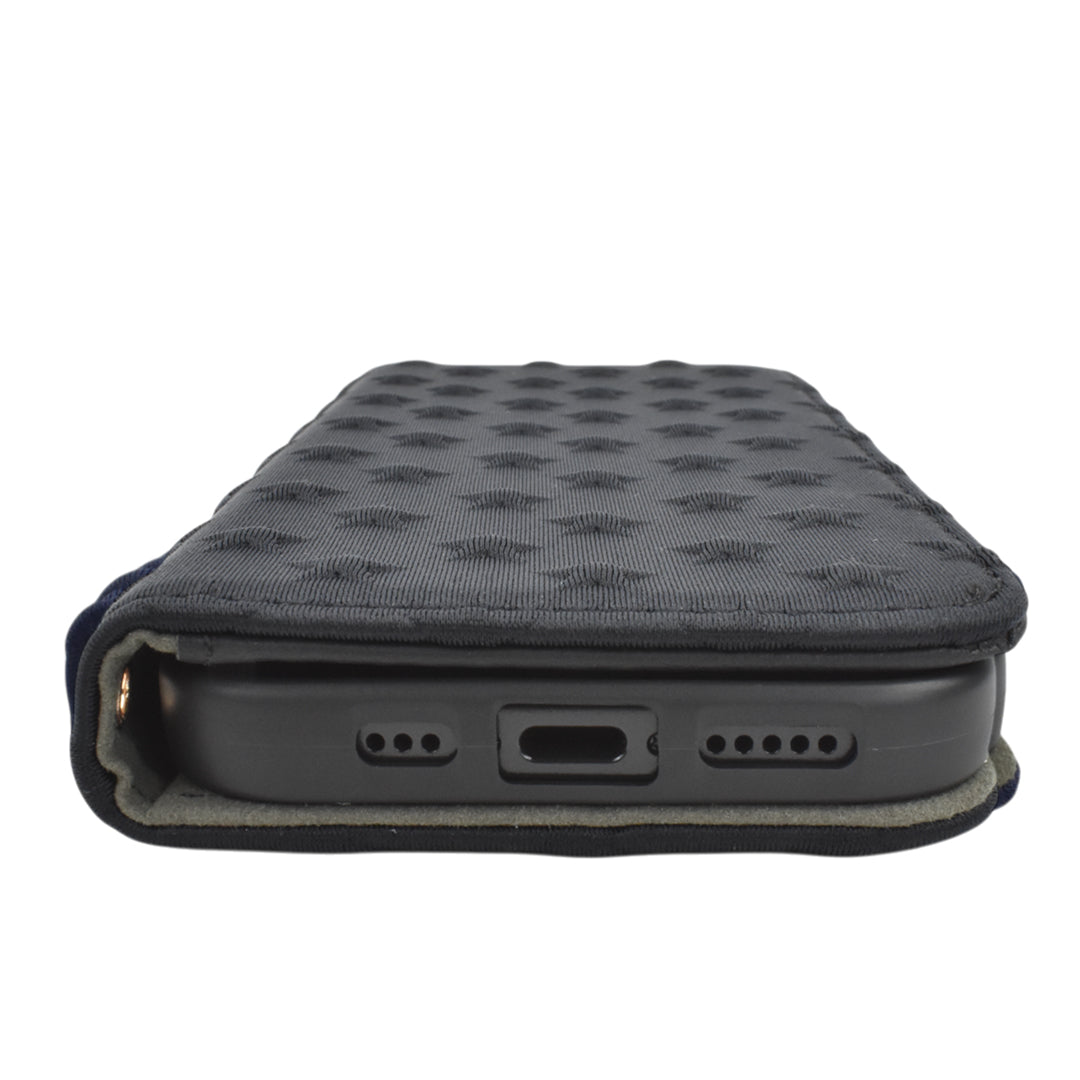アイフォンケース-16プロブック - ケースの生地にはウェットスーツにも使える柔軟で丈夫なネオプレン素材を使用。