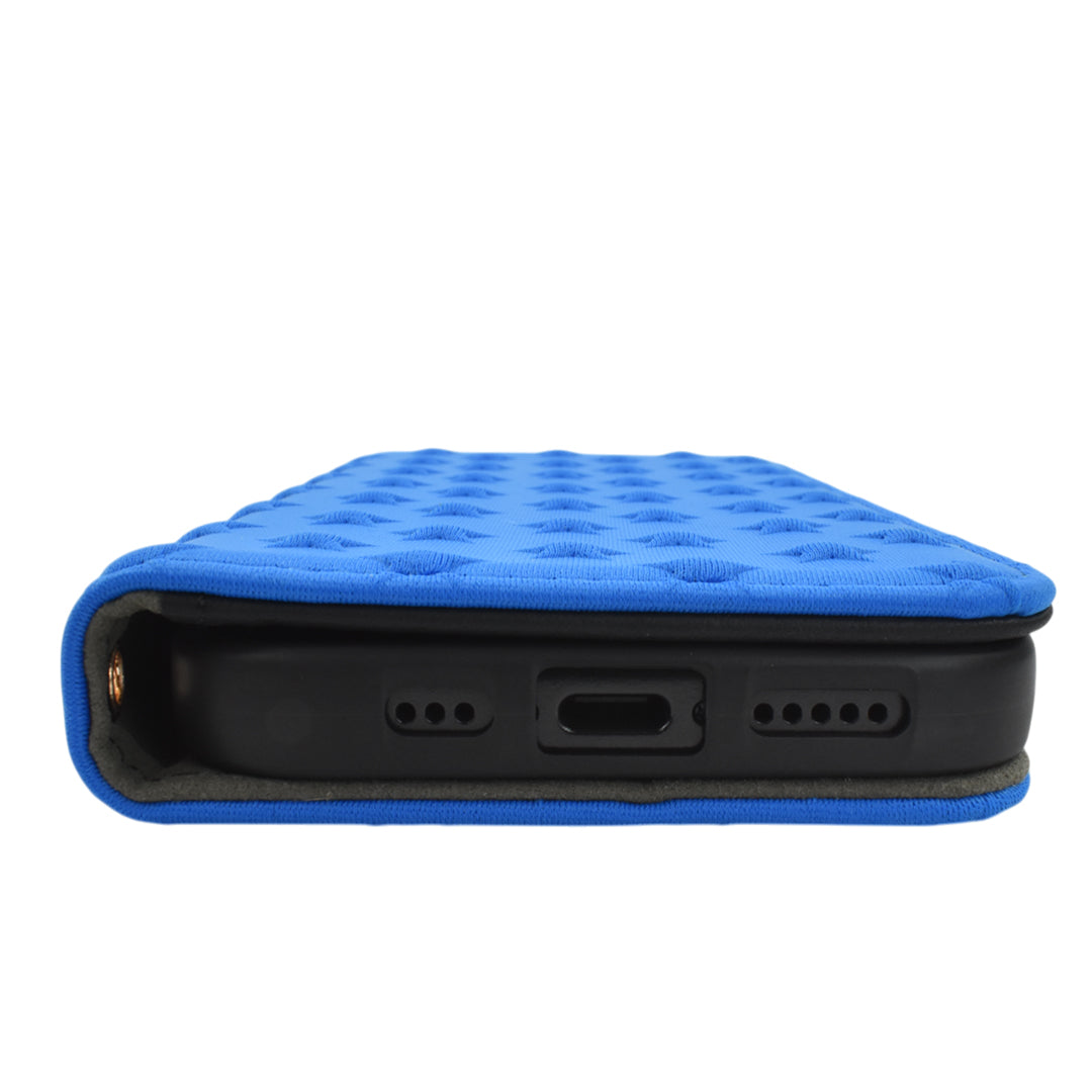 アイフォンケース-16プロブック - ケースの生地にはウェットスーツにも使える柔軟で丈夫なネオプレン素材を使用。