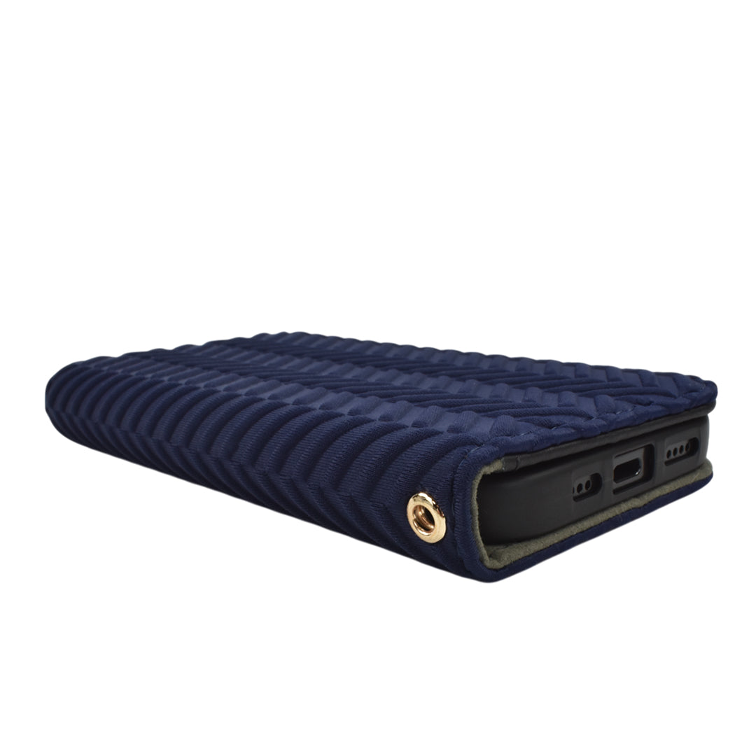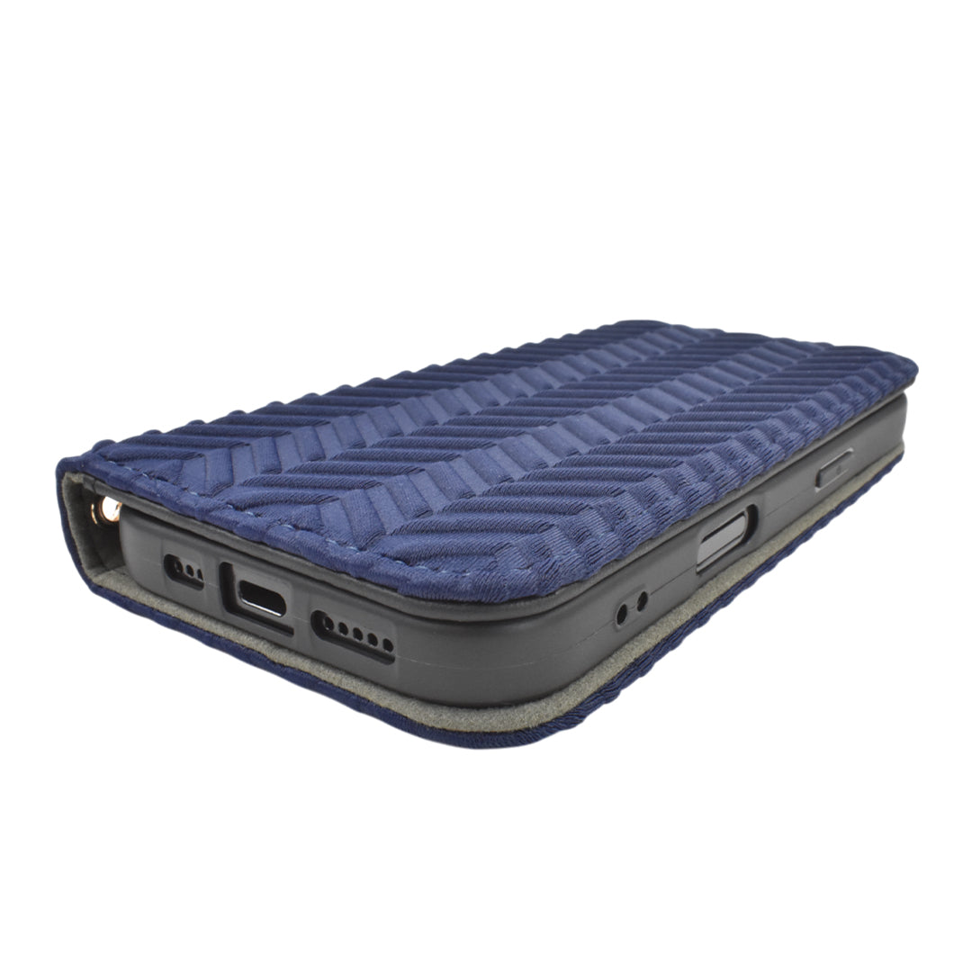 アイフォンケース-16プロブック - ケースの生地にはウェットスーツにも使える柔軟で丈夫なネオプレン素材を使用。